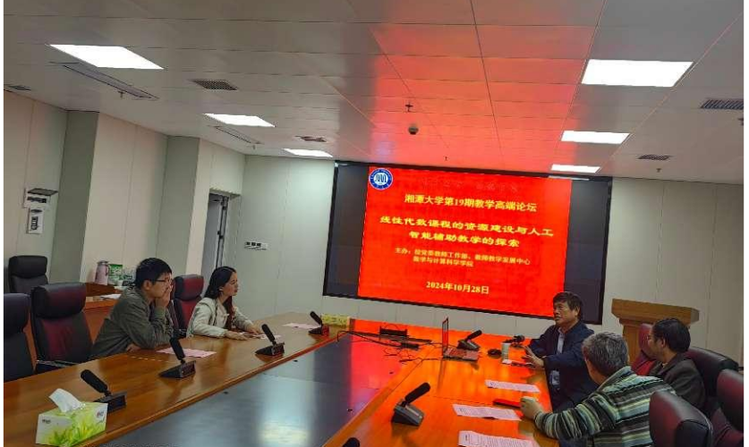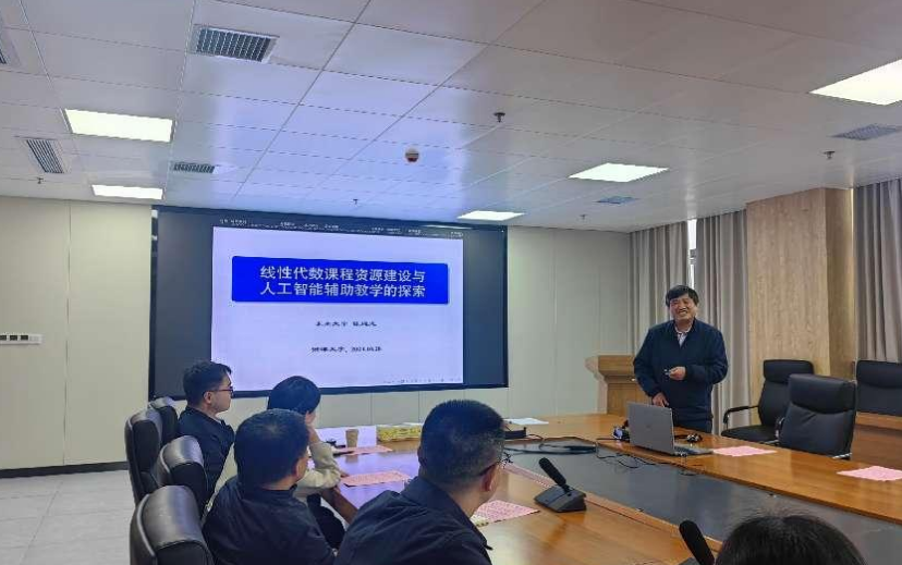 为加快推进一流学科课程建设工作,深切提高教师教育教学水平,10月28日,av影片直播 于数学楼A418顺利举办第19期教学高端论坛大会,本次论坛的主题为线性代数课程的资源建设与人工智能辅助教学的探索。论坛特邀东南大学陈建龙教授为av影片直播 老师分享线性代数建课经验,35名数学院教师代表参与论坛讨论,刘红良副院长、张娟副院长出席。论坛由杨银院长主持。