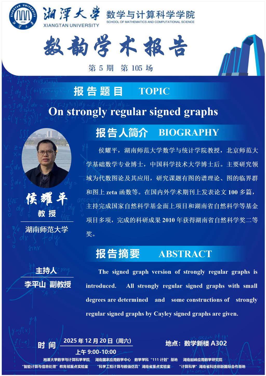 数韵学术报告-侯耀平-On strongly regular signed graphs