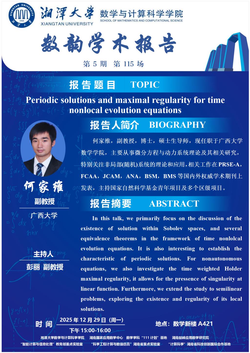数韵学术报告-何家维-Periodic solutions and maximal regularity for time nonlocal evolution equations