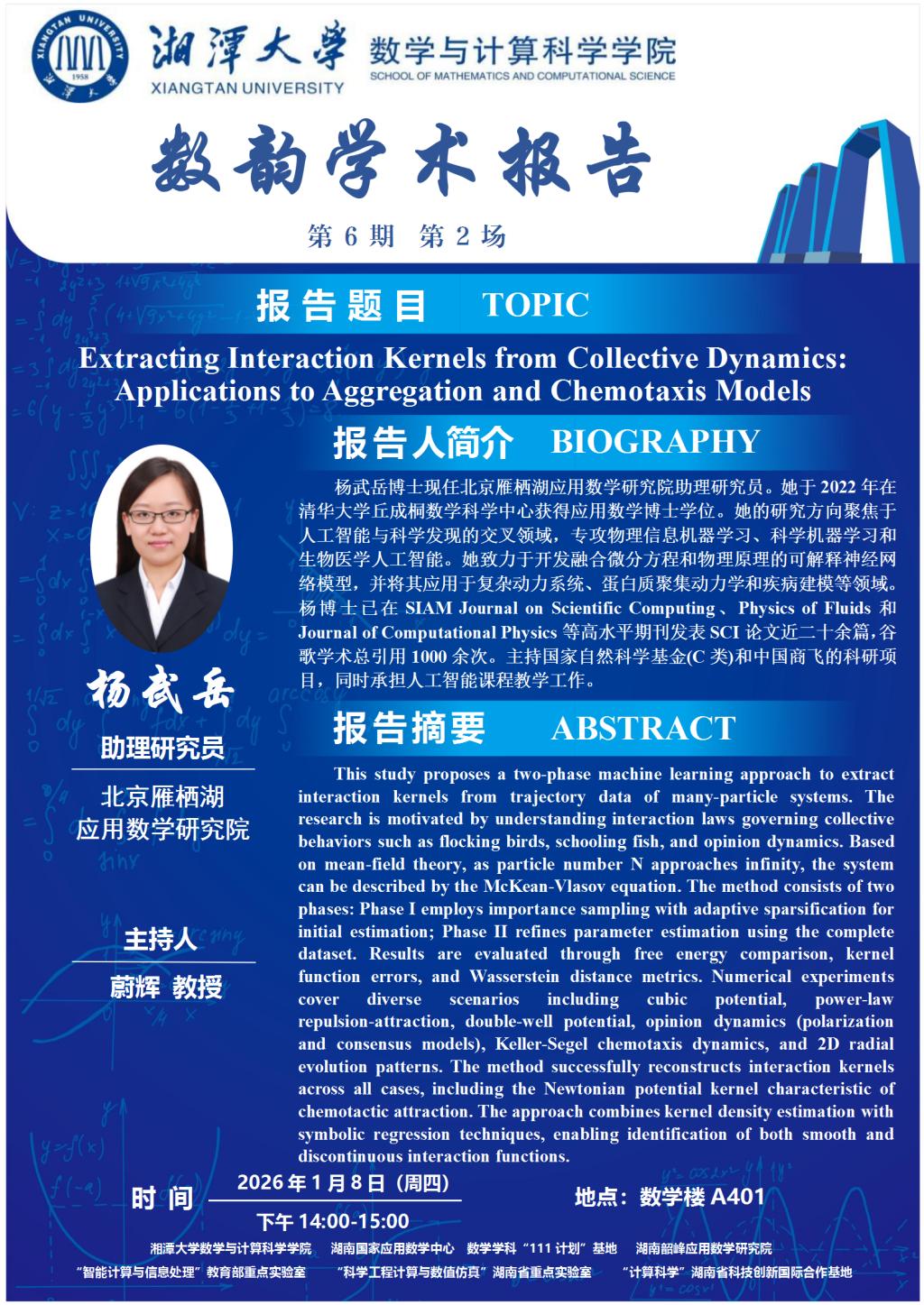 数韵学术报告-杨武岳-Extracting Interaction Kernels from Collective Dynamics: Applications to Aggregation and Chemotaxis Models