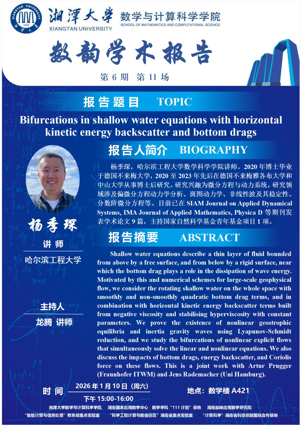 数韵学术报告-杨季琛-Bifurcations in shallow water equations with horizontal kinetic energy backscatter and bottom drags